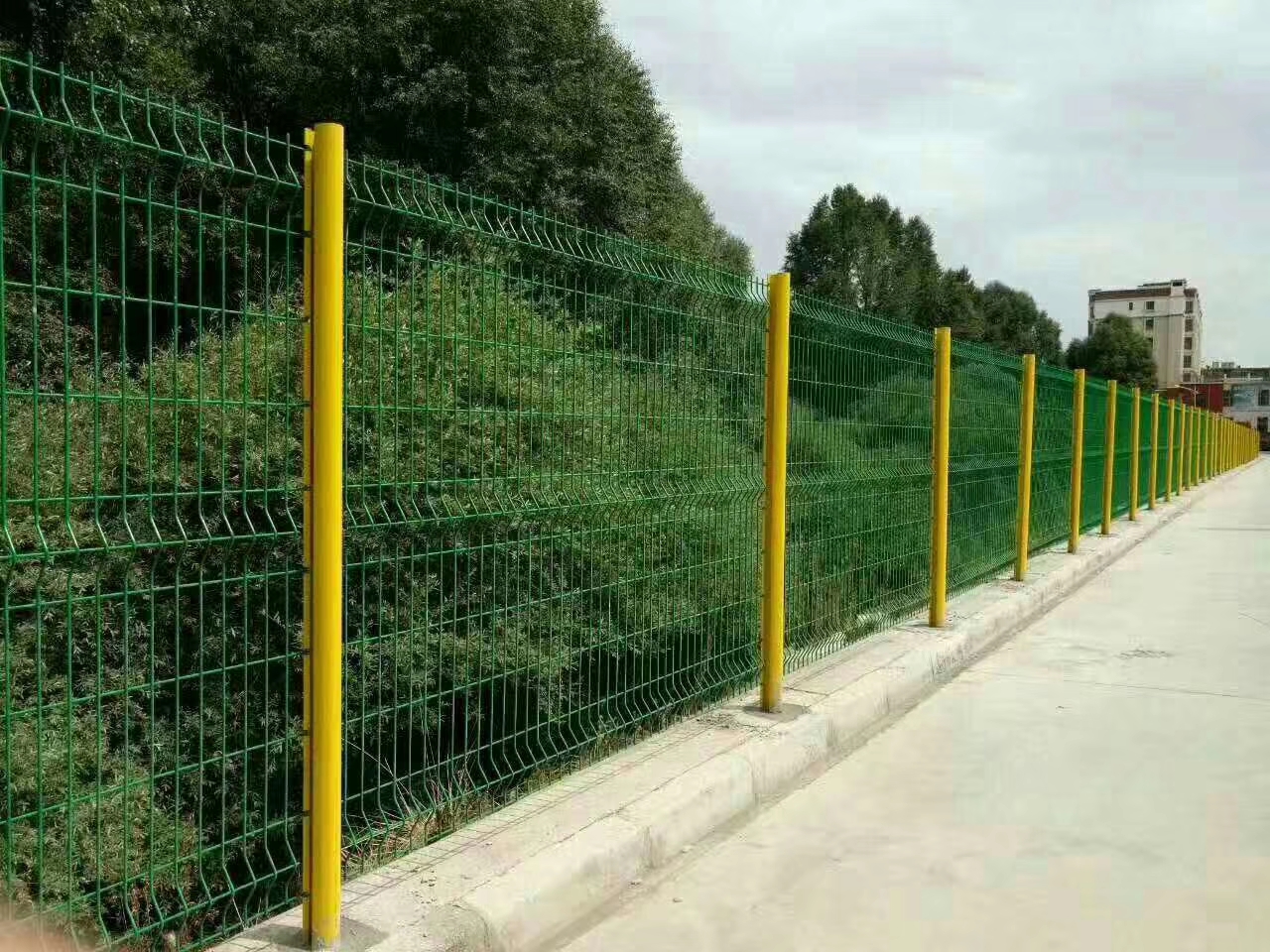 三角折彎護欄網又叫桃型柱護欄網產品特點設計獨特獨特嵌入式掛鉤設計,使立柱與圍網形成堅固的整體。三角折彎護欄網產品外觀設計曾獲法國工業設計大獎,并取得專利證書。性能優良產品使用高質量原材料,并經過特殊表面處理,抗腐蝕性極高。成品享受十年質量保證。安裝簡便產品安裝時無需特殊配件,采用推進式安裝方式,易于撐握,簡便快捷,降低成本。三角折彎護欄網表面處理工藝鍍鋅鋼帶、鋼絲+高附著力靜電聚酯噴涂色彩近兩百種的顏色及磨砂表面處理可供選擇圍網安裝方式(可選)直接填埋式安裝在矮墻上或水泥地面上通過法蘭盤安裝安全配件(可選)根據場地安全防護要求,圍網上可加裝彎頭、刺絲、虎刺。