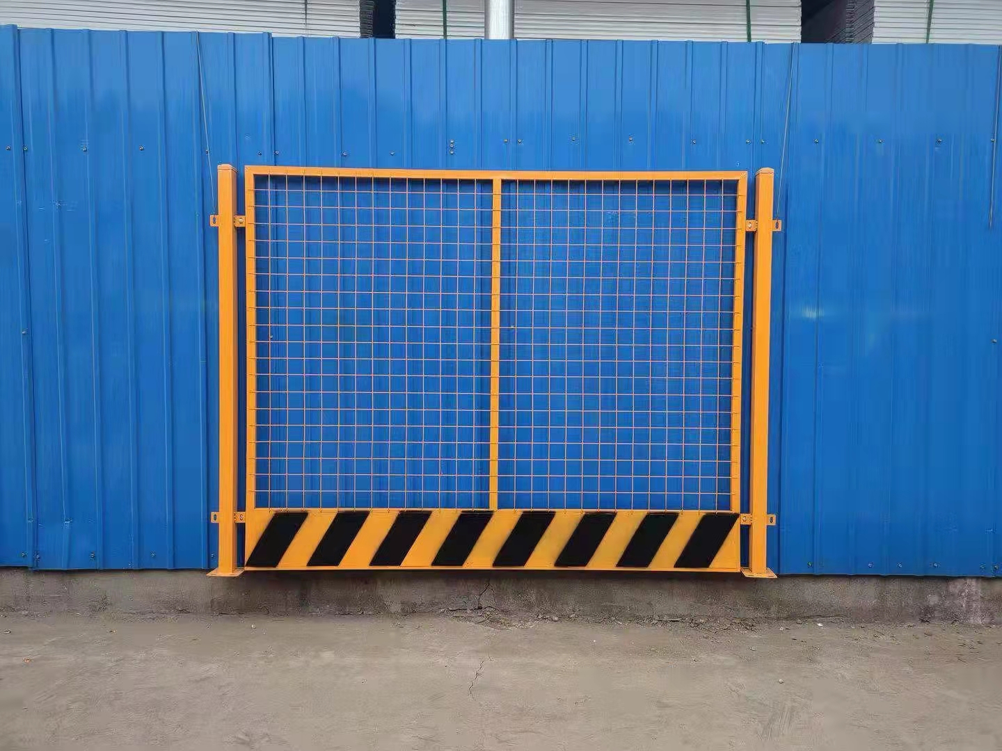 基坑臨邊防護欄由防護網片和立柱組成。基坑圍擋護欄防護網片由2cm×3cm方管焊接組成,單片尺寸1.2米×2.0米,兩端設有跨耳用Φ10螺栓與立柱連接固定,跨耳與上下邊緣距離為15cm。立柱采用5x5cm方管; 高度1.2m,底部有法蘭每個法蘭盤設4個螺栓孔、頂部封閉,與地面用Φ14膨脹螺栓固定。安裝后,護欄上邊與立柱平齊,下邊距地面20cm,兩立柱間距2米.所使用原材料均采用國家標準材料,制作嚴格按圖施工,尺寸正確,焊接點牢固,達到安全防護之目的。網片設計為黃色、立柱為紅色,均為噴繪,以達到紅白相間的警示效果。網片網格為60*60mm,鋼絲直徑為3.0mm。