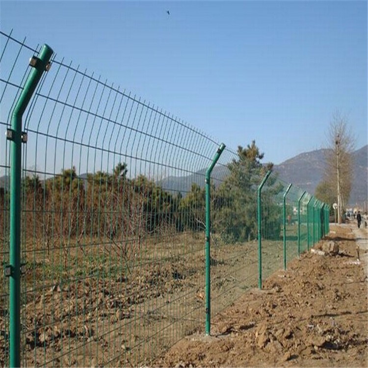 3、三角折彎護欄網除了具有前倆邊的特點以外,在結構上是雙邊護欄網的基礎上增加幾道V型加強折彎(三角折彎)最特別的就是其顏色多樣,美觀耐看。因為其常見搭配立柱是桃形柱,桃形柱表面處理多為靜電噴涂,靜電噴涂顏色比較多,紅色,黃色,綠色,灰色等等,與眾不同。