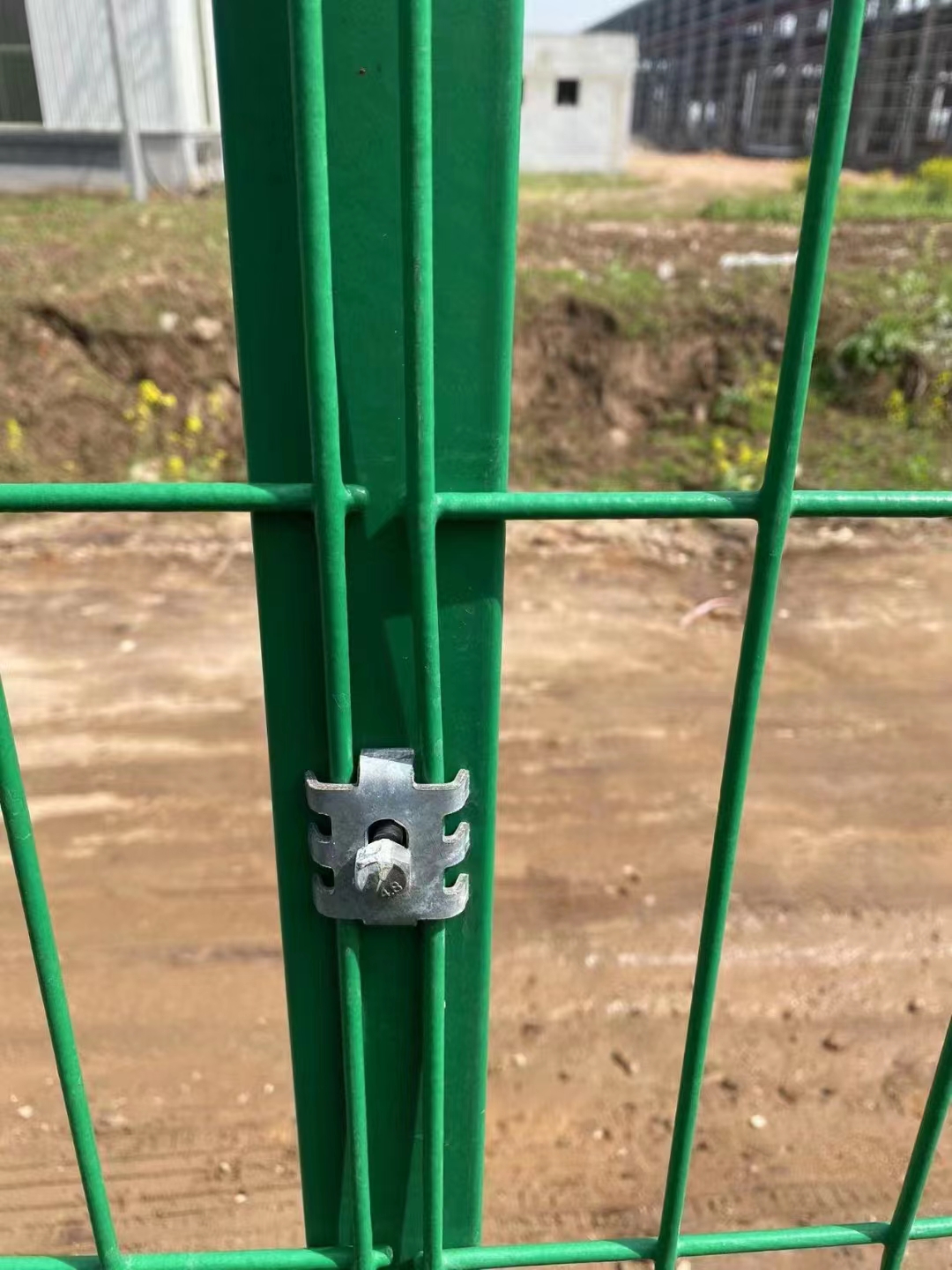 護欄網有一種安裝方式是比雙邊護欄網還要簡便的方式。我們一般稱做M卡安裝。M卡護欄網結構和雙邊護欄網類似,只是護欄網片的兩端不是雙邊絲的,而是采用單邊絲的。從材料用料來說M卡護欄網是比雙邊護欄網用料要少。結構和雙邊護欄網一樣。所以M卡護欄網性價比是比較高的。運輸也是比較方便的。因為是M卡安裝,安裝方式比雙邊護欄網要簡單一些。所以M卡護欄網是比較受到客戶歡迎的。下面的圖片是M卡護欄網的安裝效果圖。